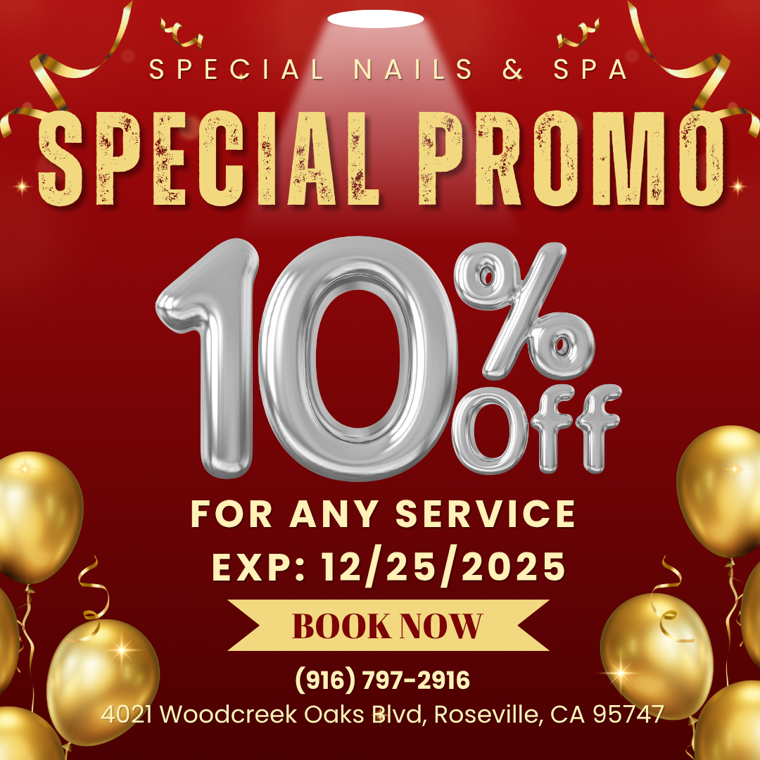 Are you looking for a reliable nail salon to perform nail and spa services? Look no further, Special Nails & Spa is the ideal location. Visit us at 4021 Woodcreek Oaks Blvd, Roseville, CA 95747, for beauty treatments and find yourself looking even more beautiful with a stylish look!